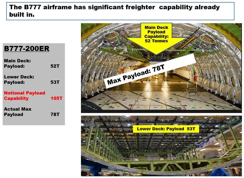 The B777–200 LCF is offered in two configurations: UL - Upper Lobe and GMF -